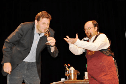 Gianantonio Martinoni e Giuseppe Gandini – entrambi ferraresi ed entrambi poco più che quarantenni, protagonisti di premi e partecipazioni cinematografiche, televisive e teatrali – a pochi giorni da Natale riportano in scena uno spettacolo-degustazione della durata di circa un’ora, unico nel suo genere, sul vino, la poesia, la sua storia e la sua chimica. Una serata, ci ha detto Martinoni, in cui si ride, si impara e ci si emoziona…