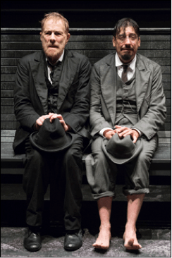 L’uomo parla con incalzare crescente e alla fine confessa la terribile verità, di essere in attesa di morire. Intanto alle spalle della vetrata ogni tanto si scorge una figura femminile. È l’ombra della moglie, che vorrebbe stargli affianco, ma che in questo momento egli rifiuta. Lui ha bisogno di vivere, di bere fino in fondo dal calice della vita. E lei gli è solo di ostacolo. Così questa donna che passa da lontano forse è il simbolo di quella morte che l’uomo si porta appresso come un’ombra. L’atmosfera è pesante ed a renderla tale un ruolo fondamentale viene giocato anche dall’imponente scenografia, disegnata da Alessandro Camera, per la realizzazione della quale sono stati riaperti gli storici laboratori del Teatro della Pergola di Firenze.